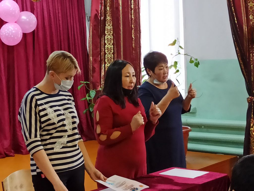 Организаторы конкурса вручили участникам дипломы и сладкие призы, а подготовившим педагогам подарили так необходимые в работе с детьми наборы бумаг «Снегурочка» и цветных бумаг. Пожелали ребятам развивать свой творческий талант и снова встретиться в следующем году на новом конкурсе жестовой песни. От имени «Школы-интерната для детей с нарушениями слуха» директору ГДК «Енисей» Сафаровой Т.Ю. и заведующей художественно-постановочной частью Оюн Ч.А. были вручены благодарственные письма за поддержку детей с нарушениями слуха.
