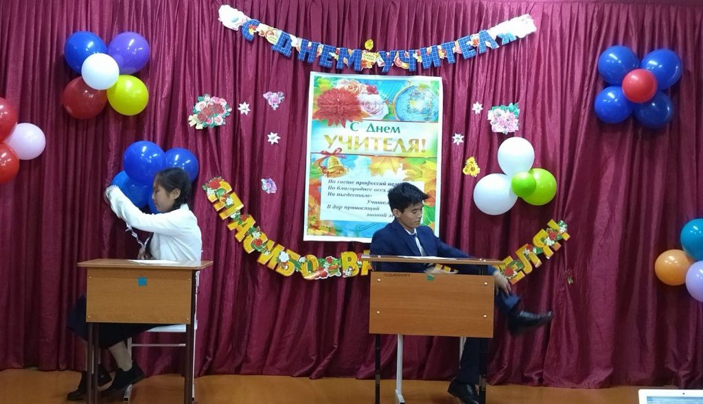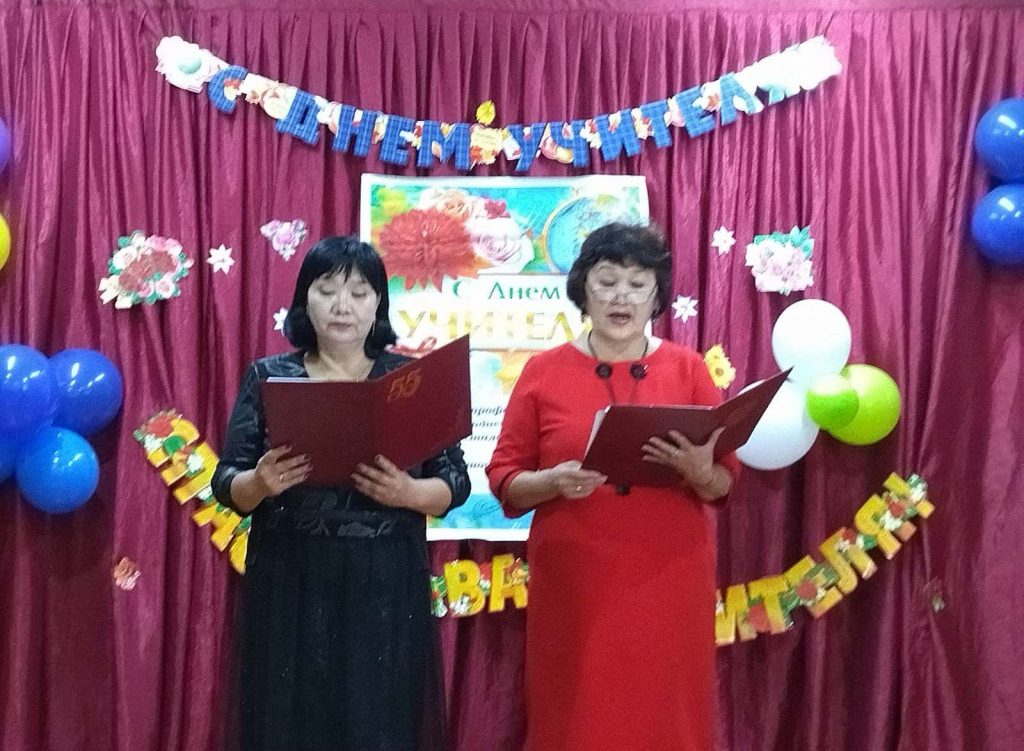 После уроков в школе состоялся традиционный праздничный концерт, на который были приглашены все педагоги. Директор школы поздравил своих коллег и вручил учителям грамоты за многолетний и добросовестный труд. А затем звучали песни, демонстрировались театральные миниатюры и танцы. В конце праздничного концерта каждому учителю были вручены значки с различными номинациями.