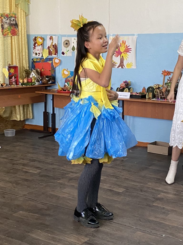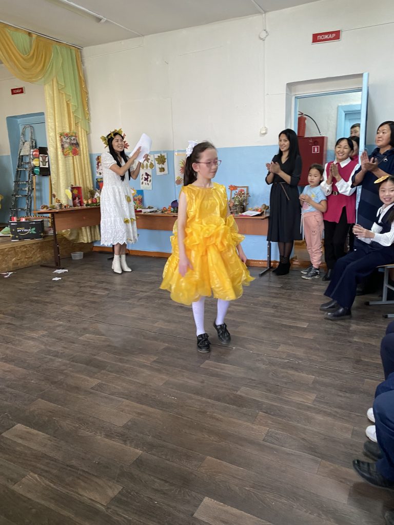 В рамках праздника состоялся конкурс показа мод с самодельными одеяниями, изготовленными из бросового материала (целлофановые пакеты). Конкурсанты дефилировали перед зрителями в удивительно красивых, фантастических нарядах. Зрители бурно реагировали и одарили модников оглушительными аплодисментами. Жюри достойно оценило старания ребят: 1 м – ученица 4а класса Дончай-оол Доржема, 2 м – 3а класс Момбур-оол Айнаш, 3м – 3б класс Сандып Алдын-Херел.