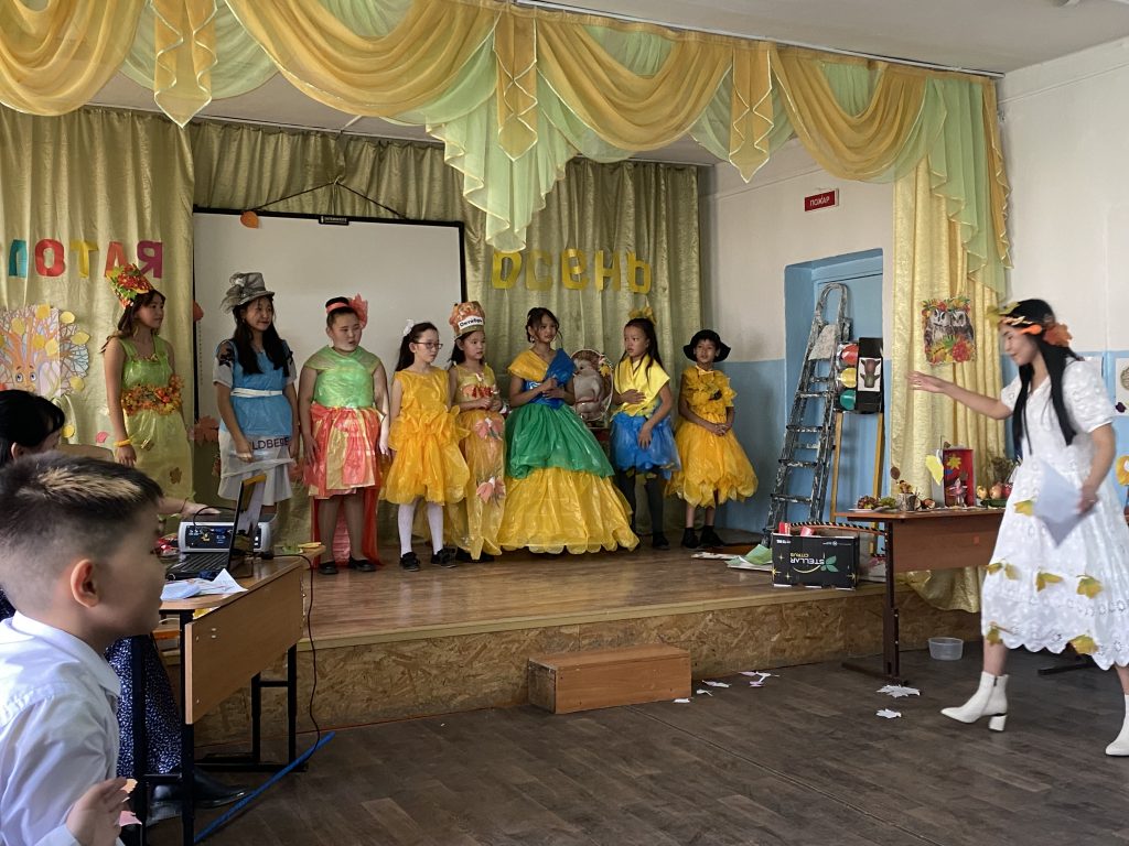 20 октября в начальной школе проведён традиционный праздник «Золотая осень». Помещение было затейливо украшено разноцветными листьями, корзинками с цветами, овощами и фруктами, детскими рисунками и поделками из природных материалов. Красовалась выставка детских творческих работ: на стенде «Осень золотая» рисунки детей об осени. На большом ватмане раскидистое дерево, на листьях которых написаны загадки, которые следует отгадать.