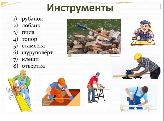 3) Какие техники деревообработки используются в профессии столяра? Это распиливание, стругание, вытачивание, склеивание, резьба. Для этого столяры используют широкий набор инструментов. Среди них и такие известные, как рубанок, лобзик, пила, топор, стамеска.