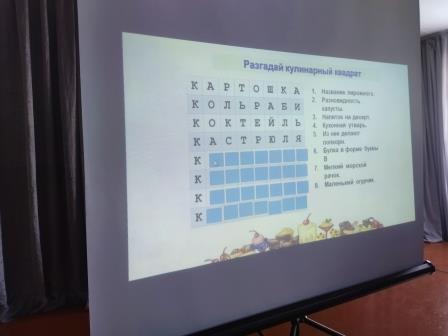 Во время конкурса ребята активно отвечали на вопросы по теме «Кулинария», говорили пословицы о труде, выполняли логические задания, отгадывали кроссворд. Жюри оценивали ответы учащихся. В итоге победила команда «Звезда», а команда мальчиков заняли второе место. Все участники конкурса награждены сладкими призами и грамотами.