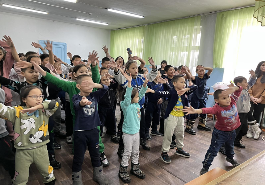В этот же день гостями начальной школы стали студенты Кызылского педагогического колледжа, и конечно же, с новогодними сладкими подарками. И в завершении встречи гости и хозяева вместе станцевали зажигательный флешмоб.