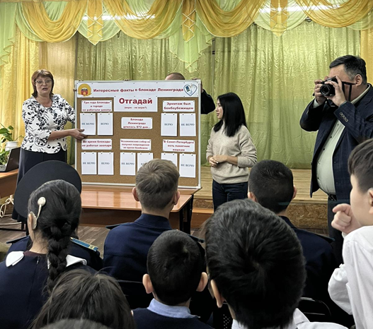 На встрече педагог КПКУ Пикалова Ольга Владимировна рассказала детям о блокадном Ленинграде, о страшных испытаниях голодом, выпавших на долю жителей Ленинграда, в том числе и детей; продемонстрировала наглядные образцы оружий и обмундирования участников Великой Отечественной войны. Ребята как зачарованные наблюдали за разборкой и сборкой автомата Калашникова, пистолета Макарова.