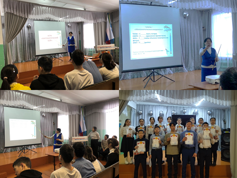 В понедельник на линейке учитель физики Панаргин Ю.И. познакомил с планом недели и провёл викторину «Знатоки физики». На вопросы викторины правильно отвечали Даваа Эртине (6в класс), Донгак Аржаана (9а класс), Донгак Кежик (9а класс), Лопсан-Комбу Айгуль (9б класс).