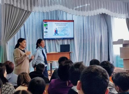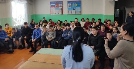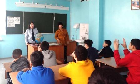Начальник ФКУ УИИ УФСИН по РТ Герман Светлана Олеговна и старшие инспектора ОПДН ОУУП и ППД УМВД России по г. Кызылу Александрова Шолбана Анатольевна, Монгуш Азиана Мергеновна ознакомили школьников с правами и обязанностями несовершеннолетних, административными и уголовными правонарушениями, с Законом «Комендантский час», с уголовными и административными последствиями за кражи, грабежи, мелкие хищения, с постановкой на учет в Отдел по делам несовершеннолетних.