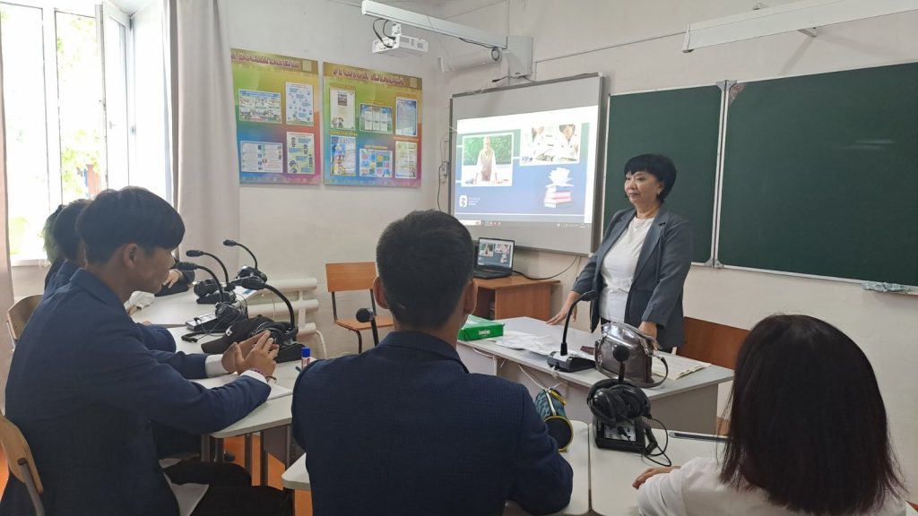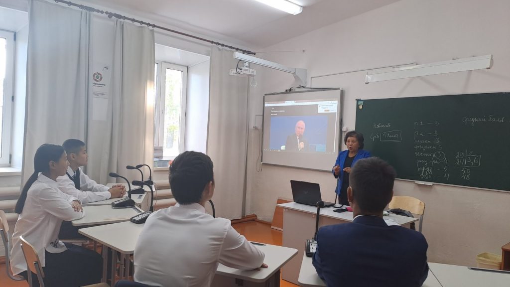 Перед занятиями обучающиеся построились на торжественную церемонию поднятия Государственного флага Российской Федерации. Почетное право поднять флаги РФ и РТ было предоставлено отличнице школы, Санаа Саглане, учащейся 9а класса.