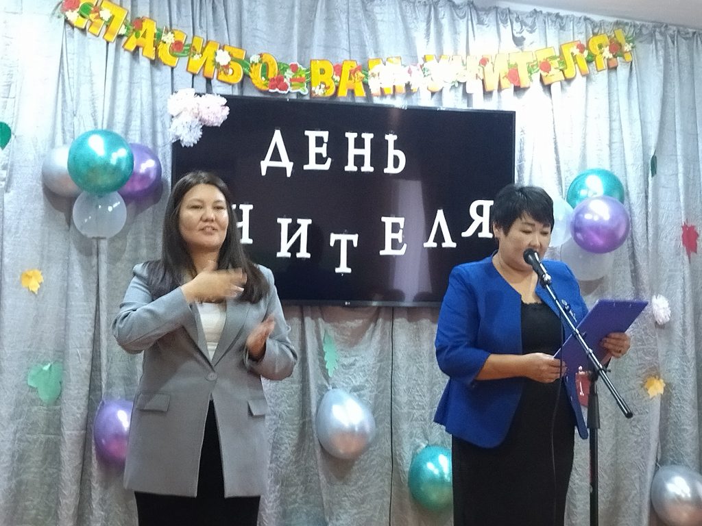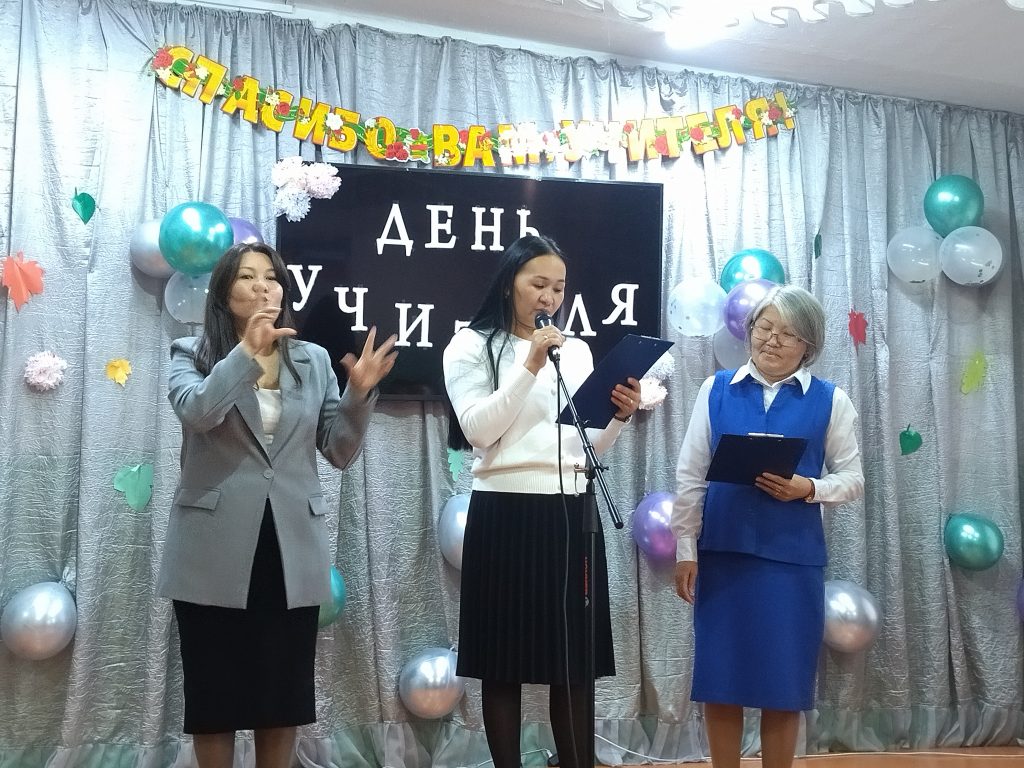Концерт начался с поздравительного слова директора школы Монгуш Ч.О. Затем на сцену вышел гость — молодой артист судии «АялгаMUSIC» Кежик Дарый-оол, который поздравив педагогов исполнил замечательную песню на тувинском языке, вызвав восторг и аплодисменты зрителей. Ученики школы продолжили праздник. На сцене звучали стихотворения в исполнении учащихся 6, 7-ых классов, жестовые песни 5а, 8б, 7в и 7г классов. Учащимися 8а класса была представлена композиция «Учитель», а ребята 5-тых классов показали мини-сценку «Два весёлых гуся». Своими подготовленными номерами учащиеся выражали благодарность и признательность всем учителям и воспитателям за их труд, заботу и преданность своей школе. Ярким моментом было выступление педагогов начальной школы с жестовой песней «Флаг моего государства» в честь ветеранов данного образовательного учреждения. Было сказано много хороших слов ведущими праздника в адрес учителей начальных классов, учителей-предметников, учителей коррекционных занятий, педагогов СПП службы школы.