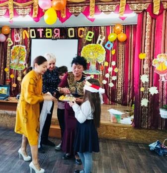 поблагодарила, подарила осенние дары каждому классу.
