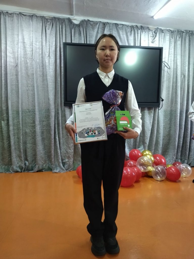 1 место – Санаа Саглана, ученица 9б класса, был вручён сертификат на сумму 3000 руб магазина «Читай-город».