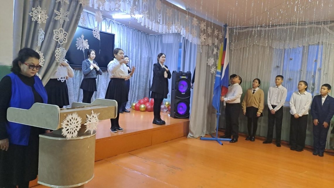 15 января в школе прошла первая в 3-ей четверти торжественная линейка, посвященная церемонии поднятия государственных флагов Российской Федерации и Республики Тыва.