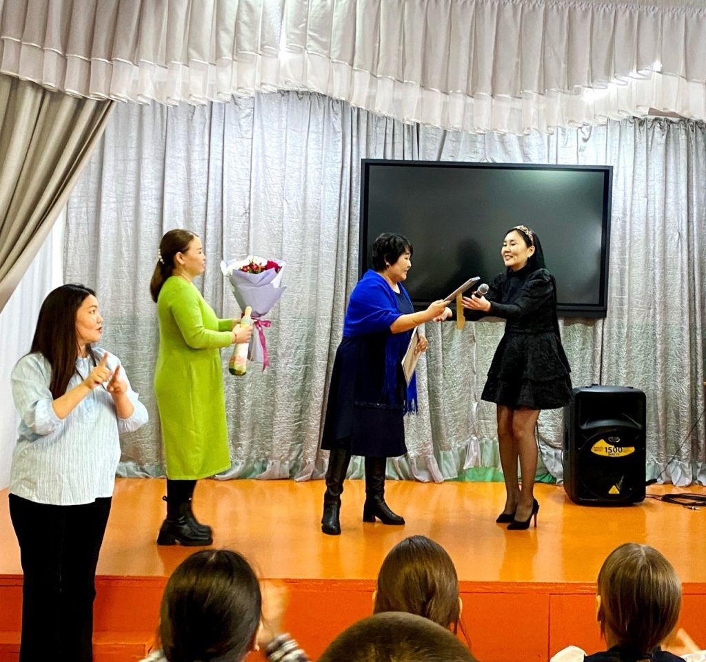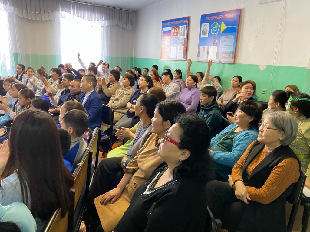 Несмотря на то, что февраль уже на исходе, в Туве зима разбушевалась не на шутку. И в эти морозные дни, когда так хочется тепла, сердца детей и педагогов школы согрела своими задушевными песнями невероятно очаровательная и талантливая звезда тувинской эстрады Бэлла. Она вживую спела несколько песен из своего репертуара. Певица смогла своим талантом, искренностью, азартом, жизнерадостностью и душевной теплотой полностью захватить внимание зрителей. Взрослые подпевали, а ребята весело танцевали в такт мелодиям, встречая каждое выступление бурными аплодисментами.