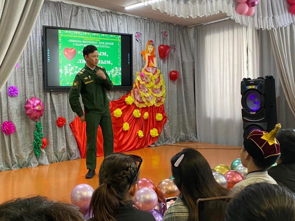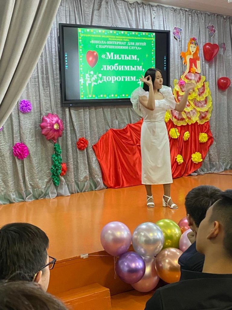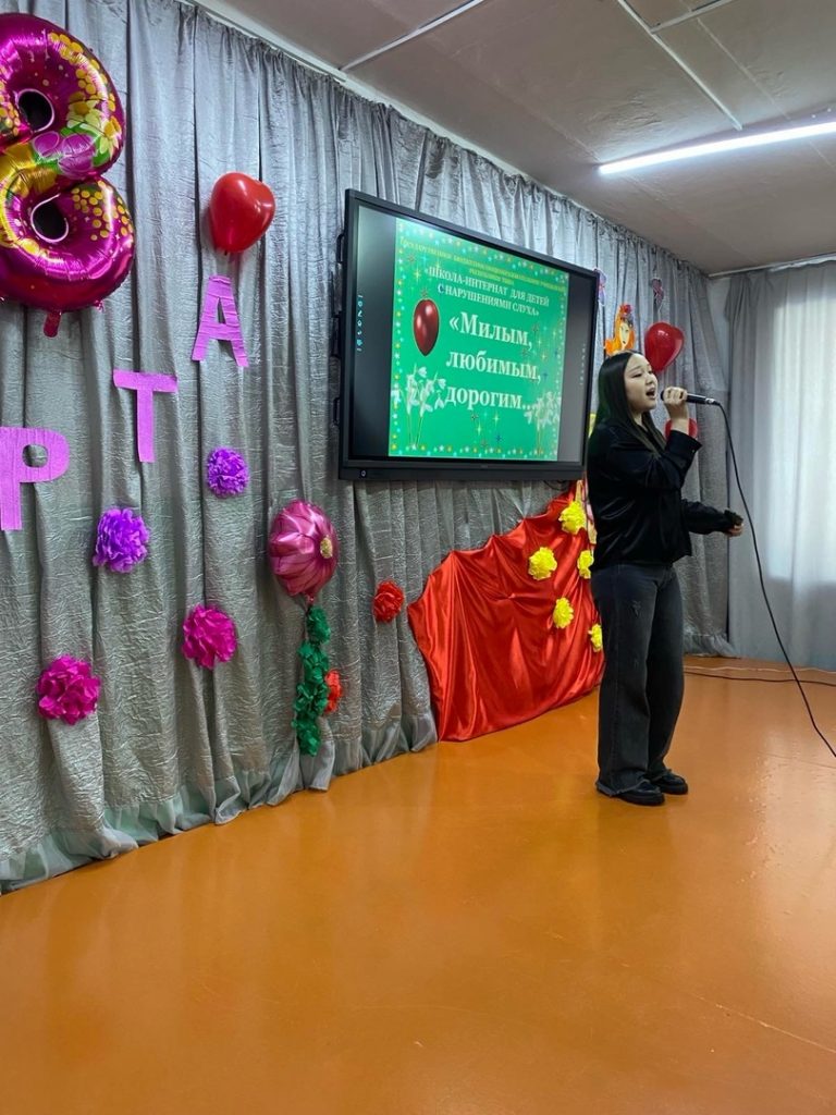 Весело и задорно спел песню «Граница» ученик 9а класса Отукай Сергек. Трогательное стихотворение автора А. Мельникова «Мама» Егорова Анна исполнила в жестовом языке.