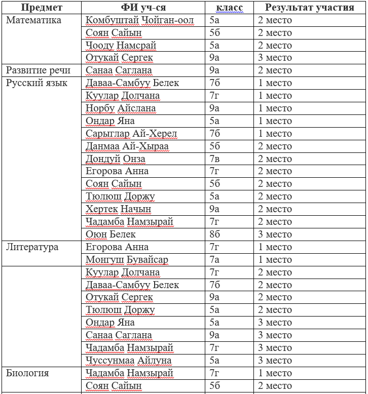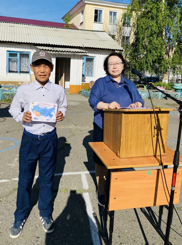 13 мая, на торжественной линейке, посвященной церемонии поднятия государственных флагов РФ и РТ в торжественной обстановке заместитель директора по УВР Сэсэг Бадыевна вручила грамоты победителям и призерам XIII Межрегиональной предметной интернет-олимпиады «Родник знаний».