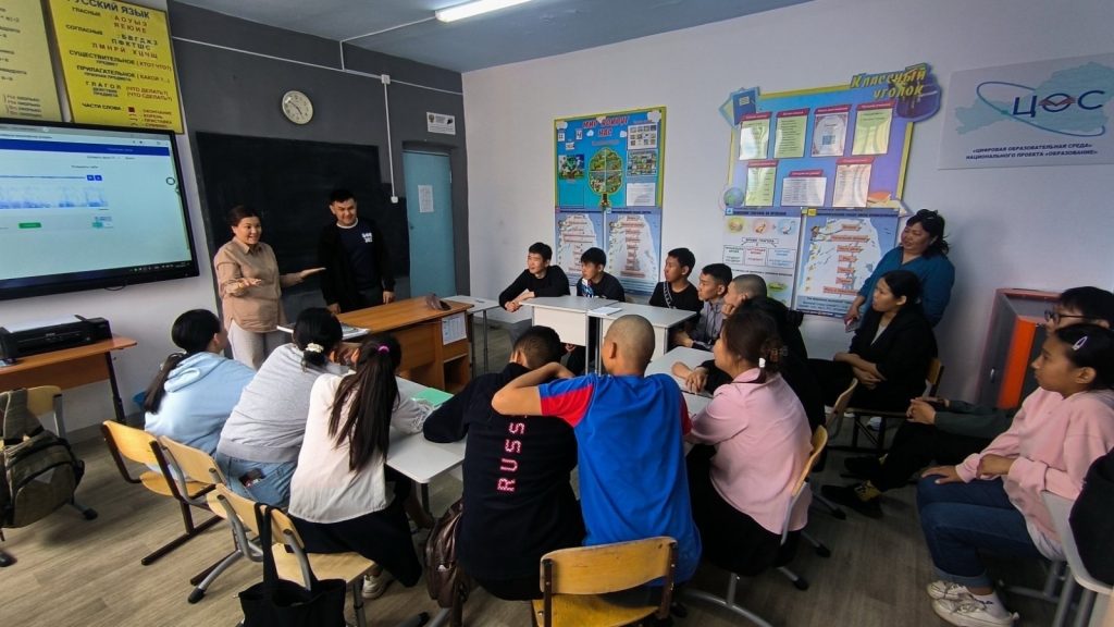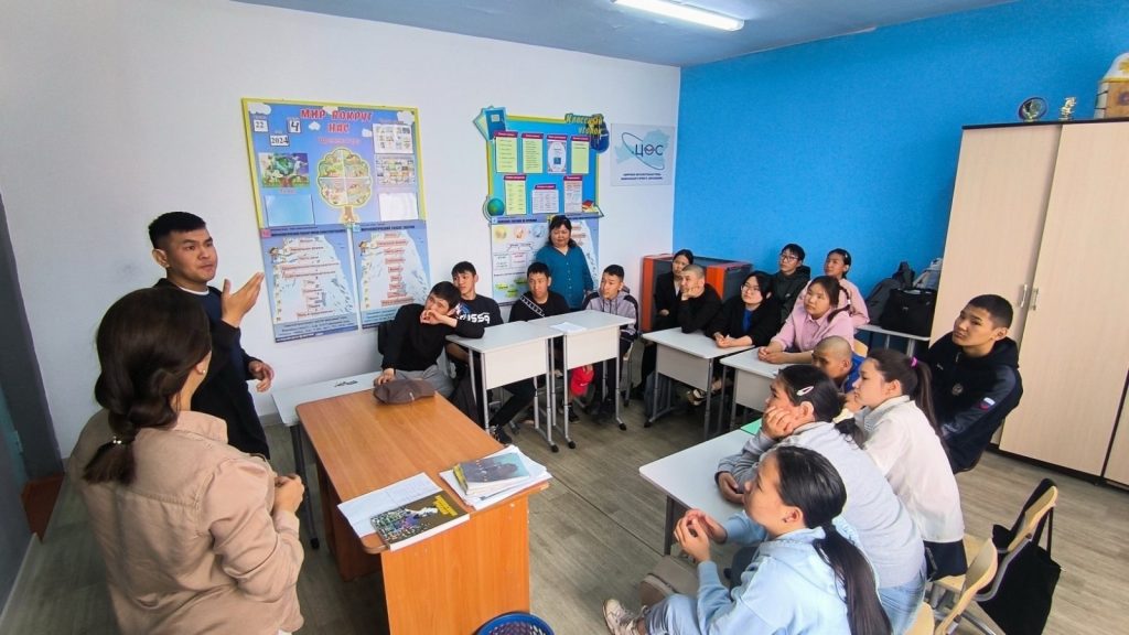 В рамках профориентационной работы классный руководитель 8″б» класса Хертек Ш. Б-Б и Иргит Ч. Д. провели встречу с выпускниками школы. На встрече наши бывшие ученики, Чаяна Демир-ооловна и Юлиан, делились своим опытом студенческой жизни, рассказывали о вступительных экзаменах и интересных местах в городах, где они учились.