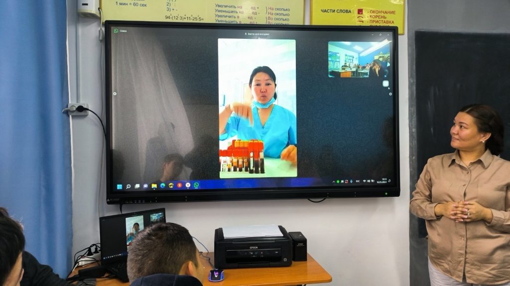 Кроме того, к нам присоединились выпускники Стас и Олеся через видеосвязь. Стас в настоящее время обучается в РГСАИ в Москве на специальность дизайнера. Он поделился своими трудностями при поступлении в университет, рассказал о размере стипендии для студентов, получающих отличные оценки. Также Стас показал свои художественные работы. Олеся поделилась своими воспоминаниями о студенческой жизни в Ульяновске и рассказала о своей работе в Перинатальном центре, подчеркнув опасности работы с анализами на ВИЧ и другие заболевания. Наши выпускники передали старшеклассникам информацию о различных профессиях и специальностях, доступных в университете, а также рассказали о правилах поступления и трудоустройства после окончания обучения.