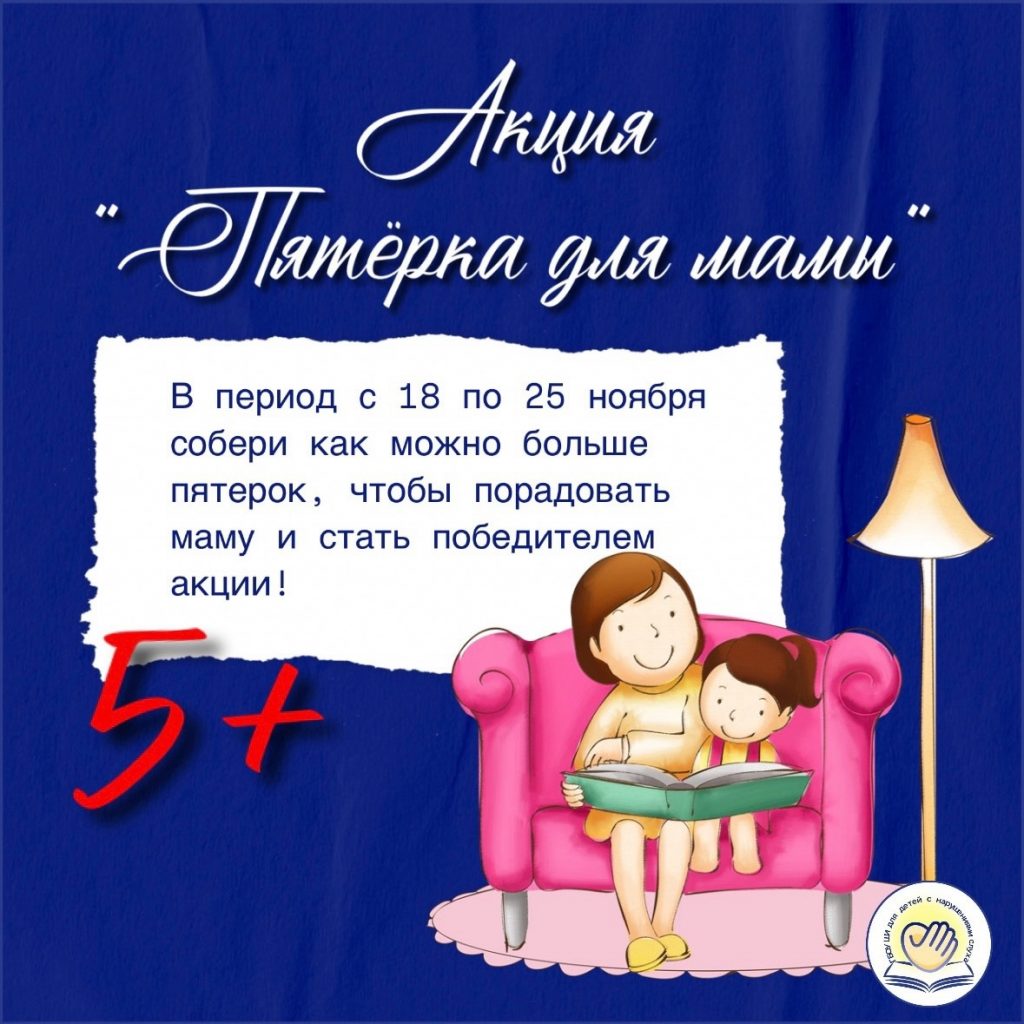 Дорогие ученики! С 18 по 22 ноября в нашей школе пройдет акция «Пятерка для мамы»! Это отличная возможность проявить свои знания и порадовать самых близких людей — мам!