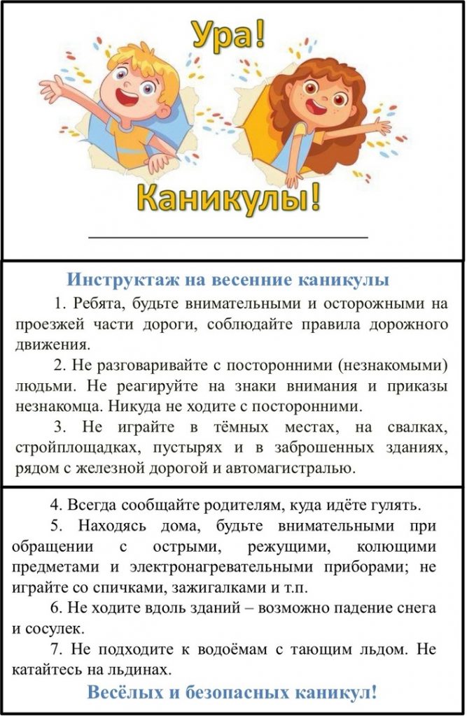 Весенние каникулы с 25 марта по 31 марта 2024 года.