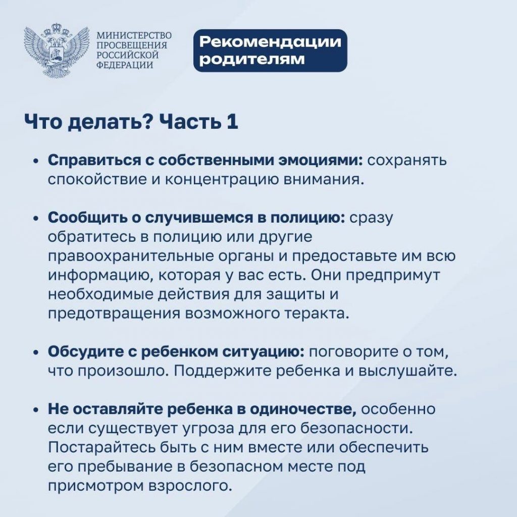 Антитеррористическая безопасность Пакет документов по антитеррористической безопасности ГБОУ ШИ для детей с нарушениями слуха Скачать Приказ о доп мерах по профилактике терроризма и экстремизма среди несовершеннолетнихСкачать Рекомендации родителям и детям по антитеррористической безопасности :